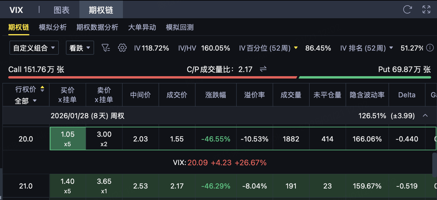 👉 在上述背景下,买入 VIX 20 Put 是一种结构简单、逻辑纯粹、风险上限明确的做空波动率策略。