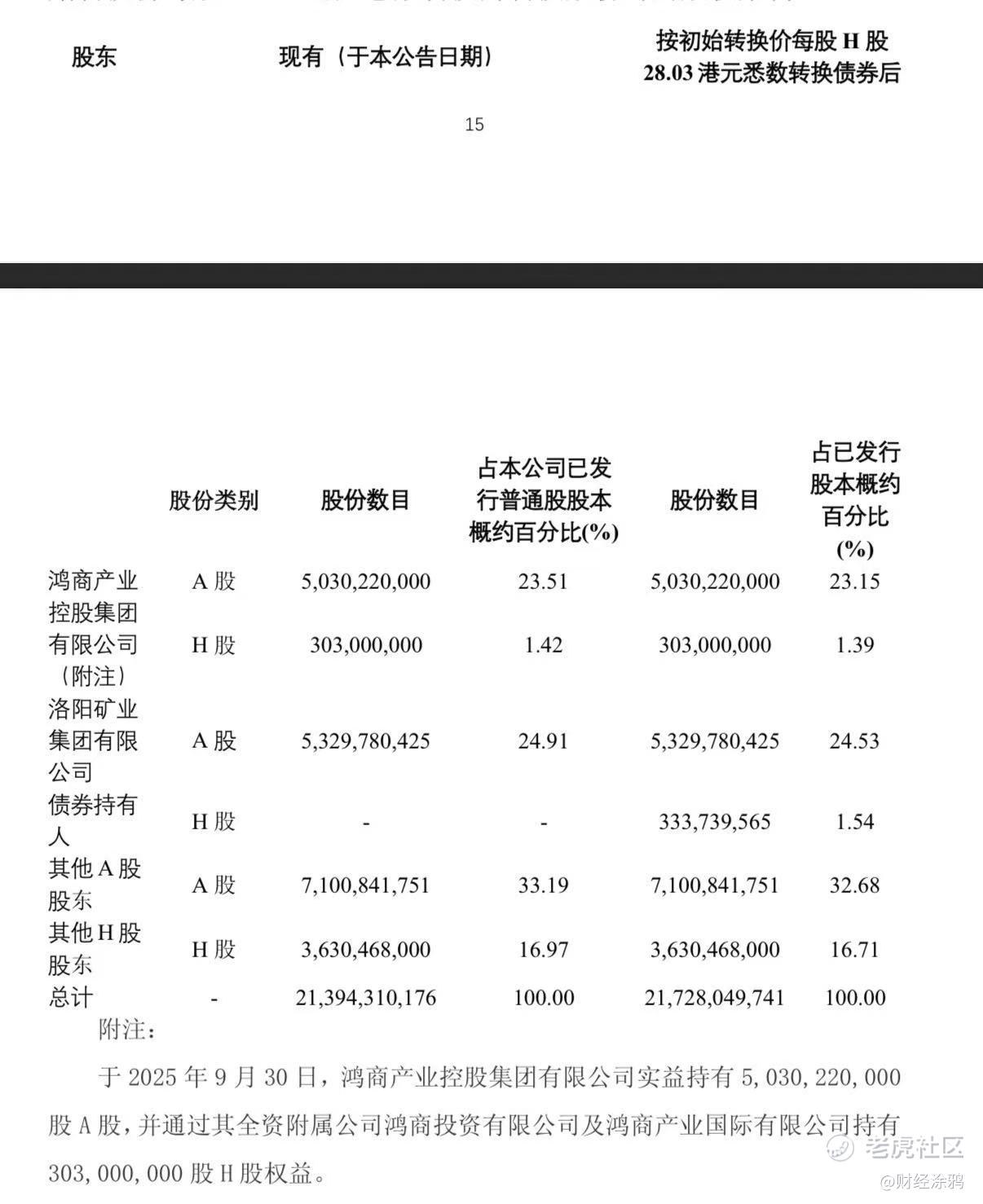 股权结构方面,截至公告日,鸿商产业控股集团有限公司仍持有5,030,220,000股A股,并通过其全资附属公司鸿商投资有限公司及鸿商产业国际有限公司持有303,000,000股H股权益。