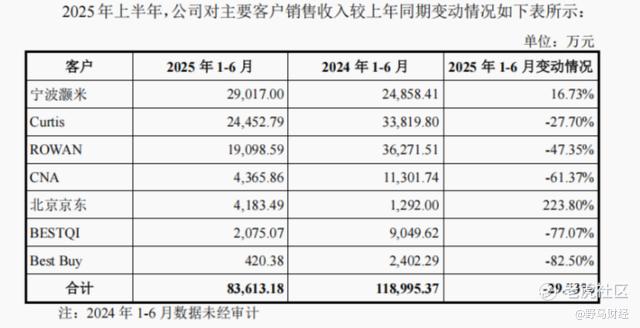 具体来看,2025年上半年,公司长期合作的国际大客户Curtis、ROWAN、CNA均采购量大幅下滑,销售额分别为2.45亿元、1.91亿元、0.44亿元,同比下降27.7%、47.35%、61.37%。另外对BESTQI的销售额大幅缩水,同比下降77.07%至2075.07万元,导致BESTQI直接退出了前五大客户名列。