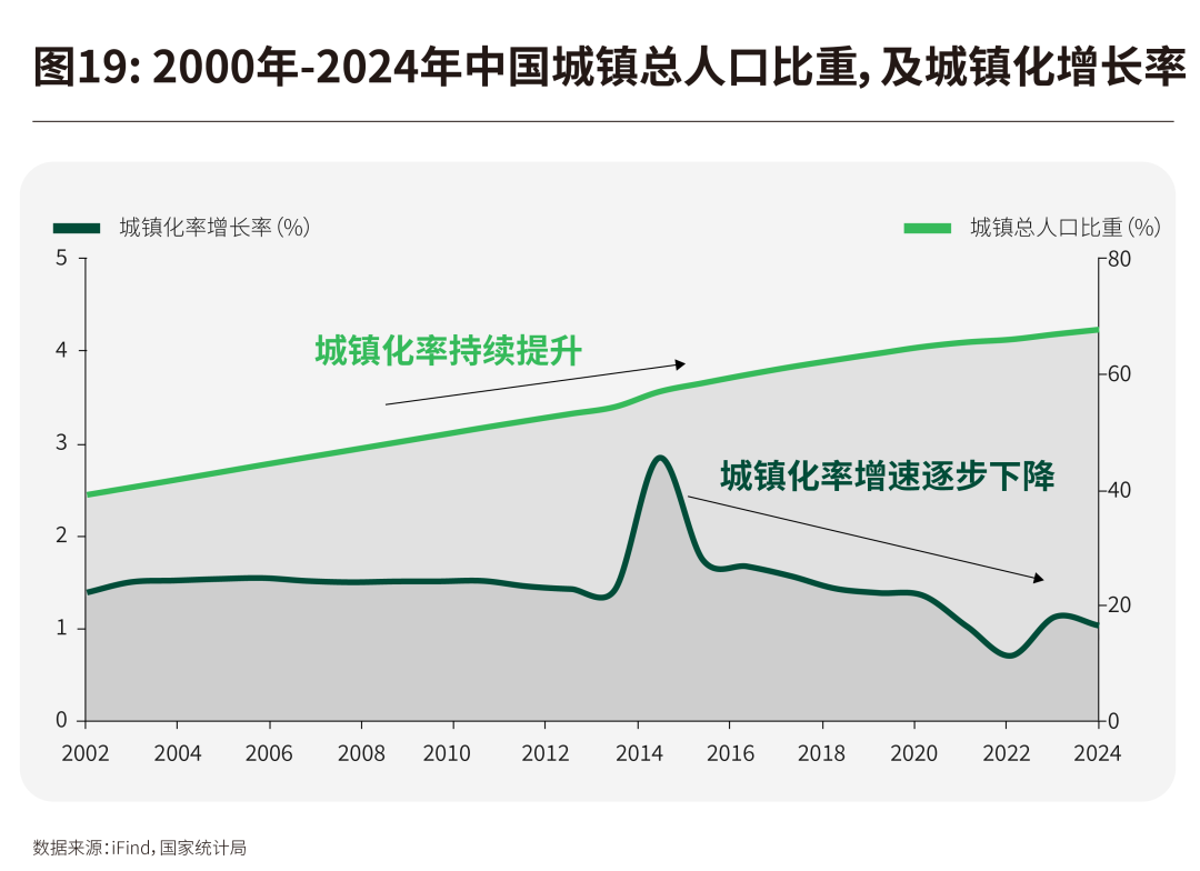 改革开放以来,我国常住人口城镇化率从1982年的21.1%增长到2024年的67.0%,城镇化率大幅提升。过去四十年的城镇化进程中,向大城市集聚是人口流动最核心、最持久的特征之一,近年来也出现了人口向区域中心城市和省内回流的多元化选择。未来我们预计将主要由乡村人口的数量降低及逐步合并撤销,从而实现城镇化率的提升。
