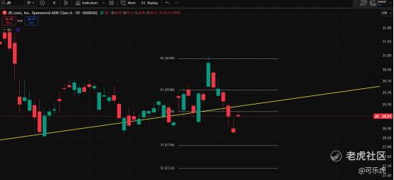 二十一、JD 不是一般的磨叽,选BABA。已经跌破画线法的底部斜线