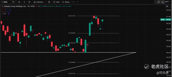 十、BABA:还不错,可以入。下方支撑:159、152、147。走势预判:短期内有压力,站稳167之后,下一档压力171突破的话小碎步向上。