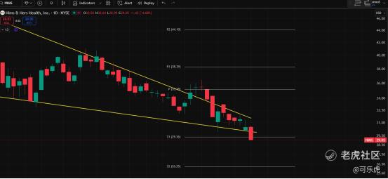 十七、HIMS:**太能跌了,30这挡支撑(划线法)守不住。25、26会是不错的介入价。