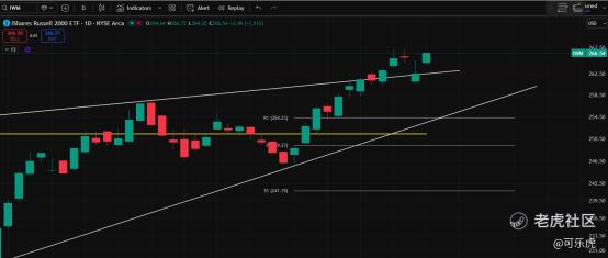 2、IWM重新站稳压力线,今年中小盘真的很强势,3倍做多:TNA大家一定要关注起来,IWM目标价297以上。