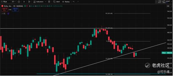 三、TSLA 小反弹,下方支撑:414、380站稳461才会强势。小结:整体趋势向上,不用在意那几块、十几块钱的差价。