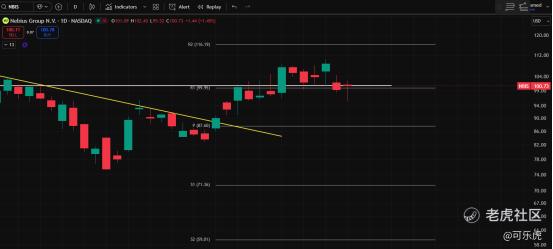 十三、NBIS(优)可以建仓。今晚守住了“颈线”100支撑非常强。反弹趋势,上方压力116.1