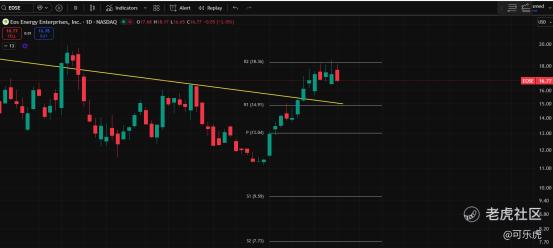 十五、EOSE:(优)突破18.3会很强势!!强支撑14.9电池板块强势,已突破下图压力黄线,小碎步向上。