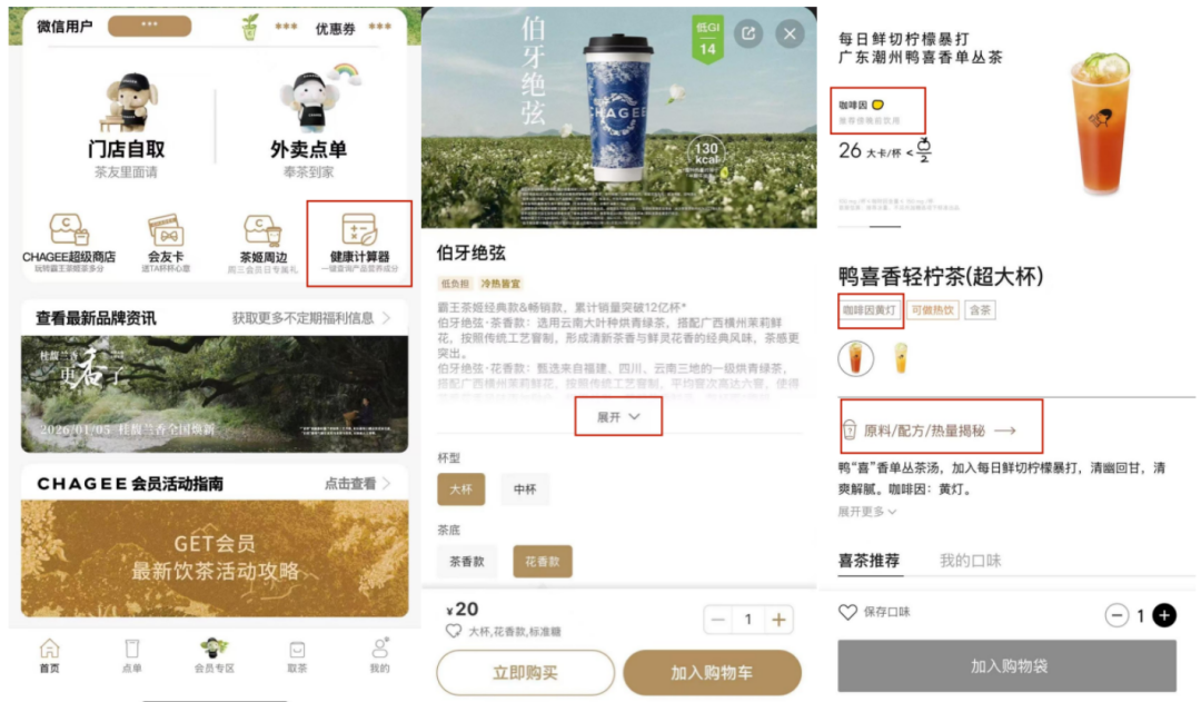 资料来源:霸王茶姬微信小程序、喜茶微信小程序