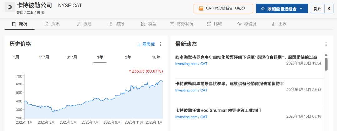 继2025年上涨58%后,CAT股价在2026年初以来又上涨约10%,并拥有399亿美元的创纪录订单储备。