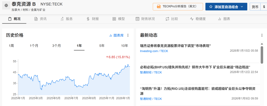 受铜价飙升和板块轮动影响,泰克资源股价2026年以来年内涨幅约5%,创52周新高。
