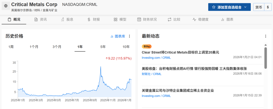 受高品位稀土钻探结果公布、格陵兰岛试点工厂获批等利好推动,CRML股价在2026年迄今已飙升近150%。