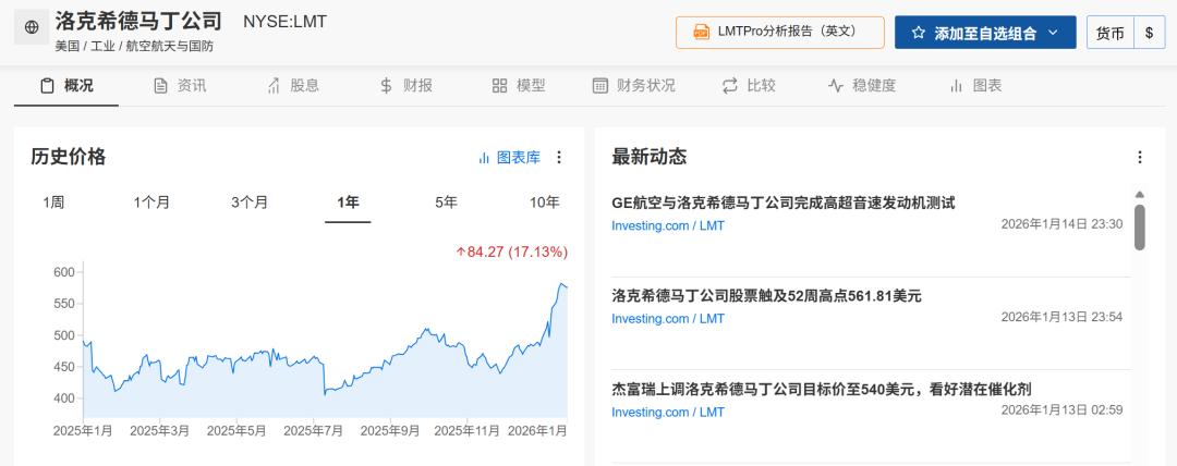 LMT股价图表 (来源: InvestingPro)