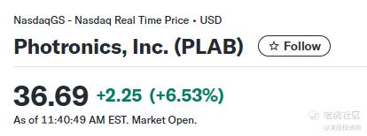 半导体掩模制造领军企业Photronics(PLAB)今日同样表现稳健,涨幅达到6.53%。我们最初发现该股的布局价格为31.42美元,目前累计涨幅已达16%。 $福尼克斯(PLAB)$