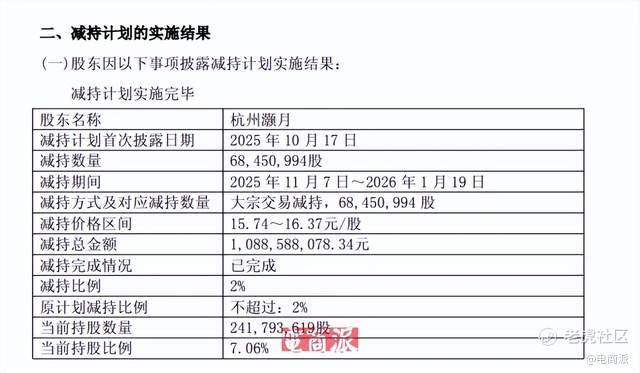 后续,杭州灏月开始启动减持操作。2025年3月,杭州灏月率先抛出减持计划,通过大宗交易减持圆通2%股份,套现超8亿元;时隔半年,又在2025年11月至2026年1月期间,再次减持2%股份,斩获约10.89亿元。