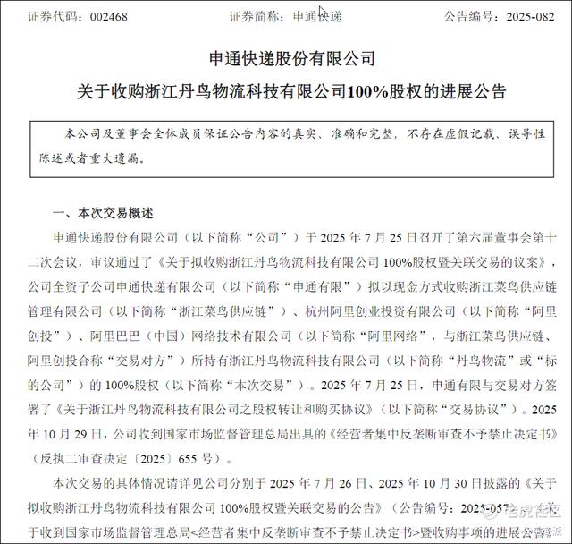 最近几年,阿里已陆续收缩多家物流公司的投资。比如,韵达股份的持股比例从2023年末的2%降至2025年上半年的0.71%;中通的少数股权减持也在推进;就连菜鸟旗下的丹鸟物流,也已转手卖给申通,作价3.62亿元。