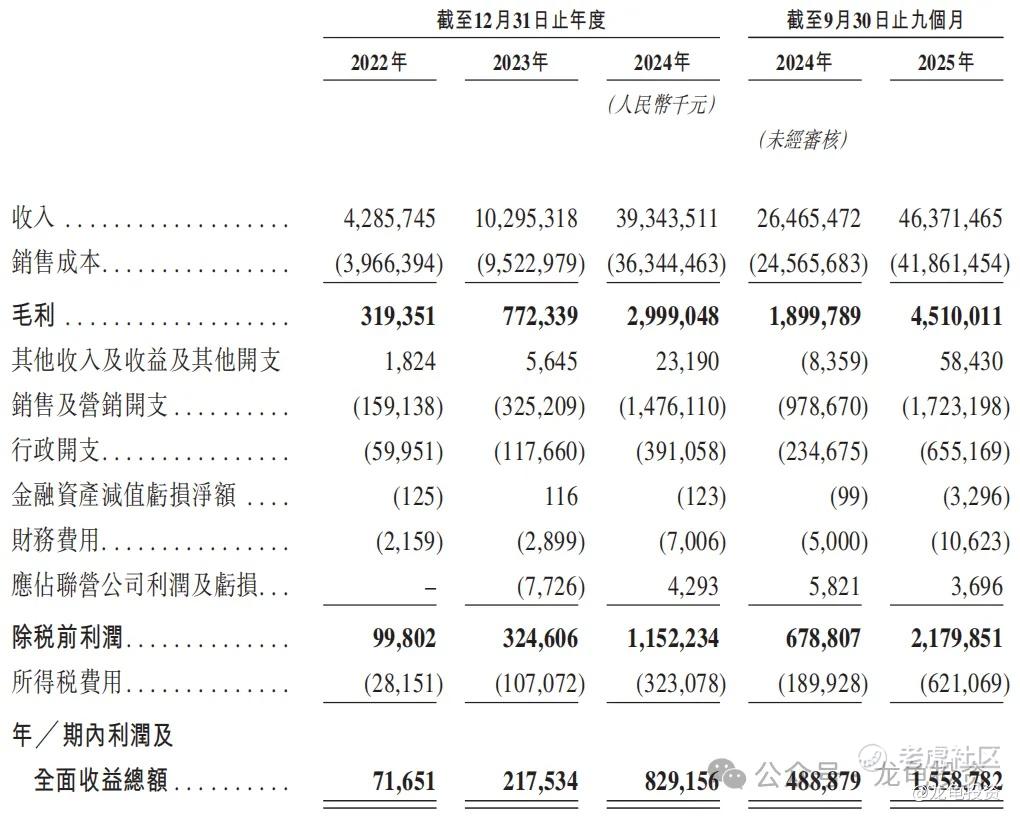 22年毛利3.19亿、23年毛利7.72亿、24年毛利29.99亿,25年Q3毛利45.10亿,较上年同期毛利18.99亿,增长137.49%;