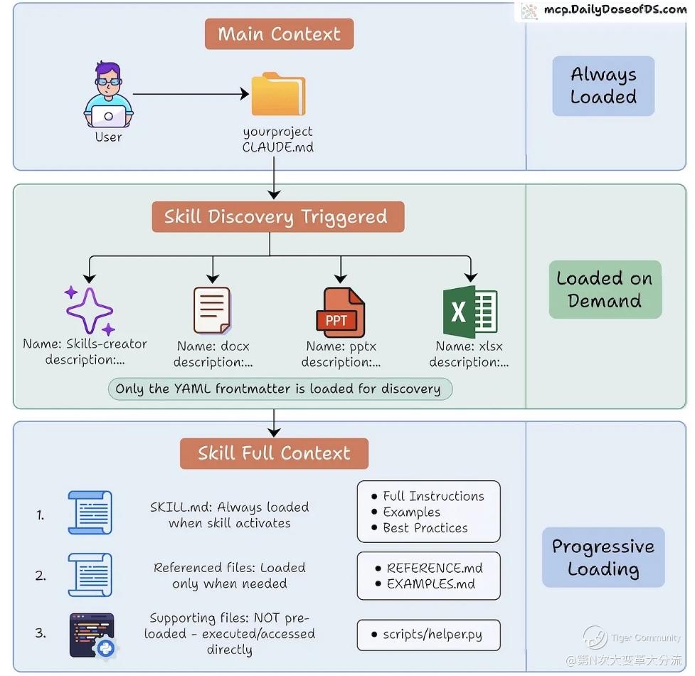 Claude Skills 的 progressive context loading