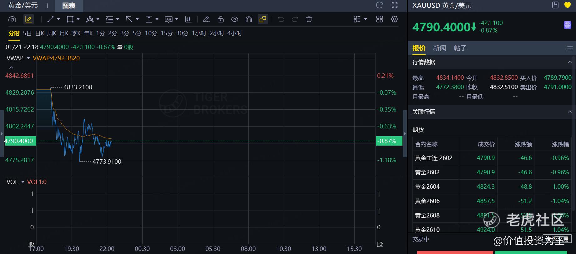 受此影响,金价应声下跌,一度跌超1%: