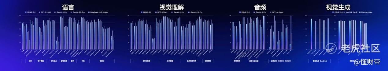 在40余项权威基准的综合评测中,文心 5.0 正式版的语言与多模态理解能力超越Gemini-2.5-Pro、GPT-5-High等模型,稳居国际第一梯队。图像与视频生成能力与垂直领域专精模型相当,整体处于全球领先水平。