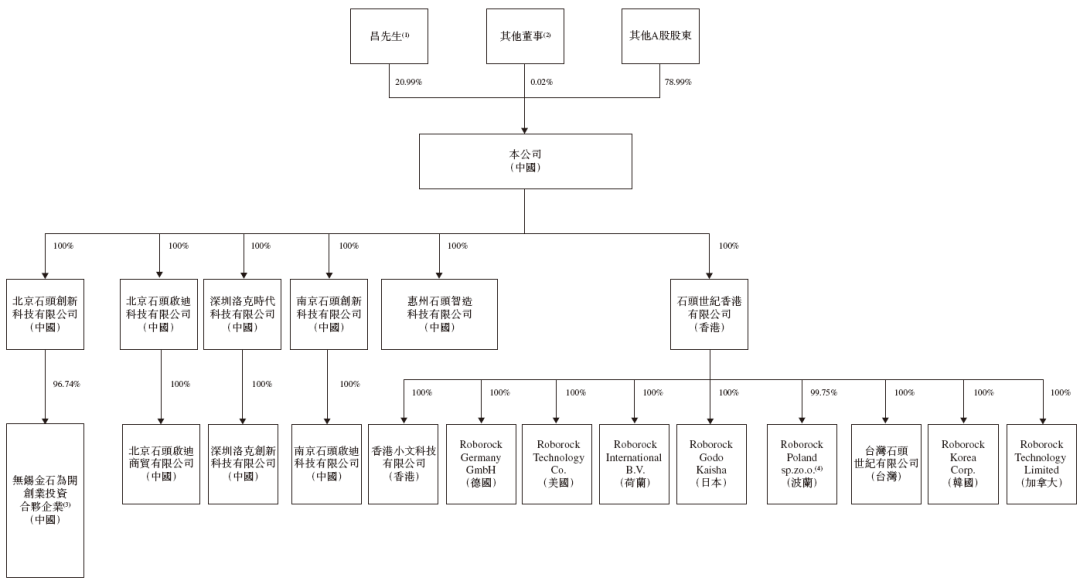 根据招股书披露,石头科技在香港上市前的股权架构中,