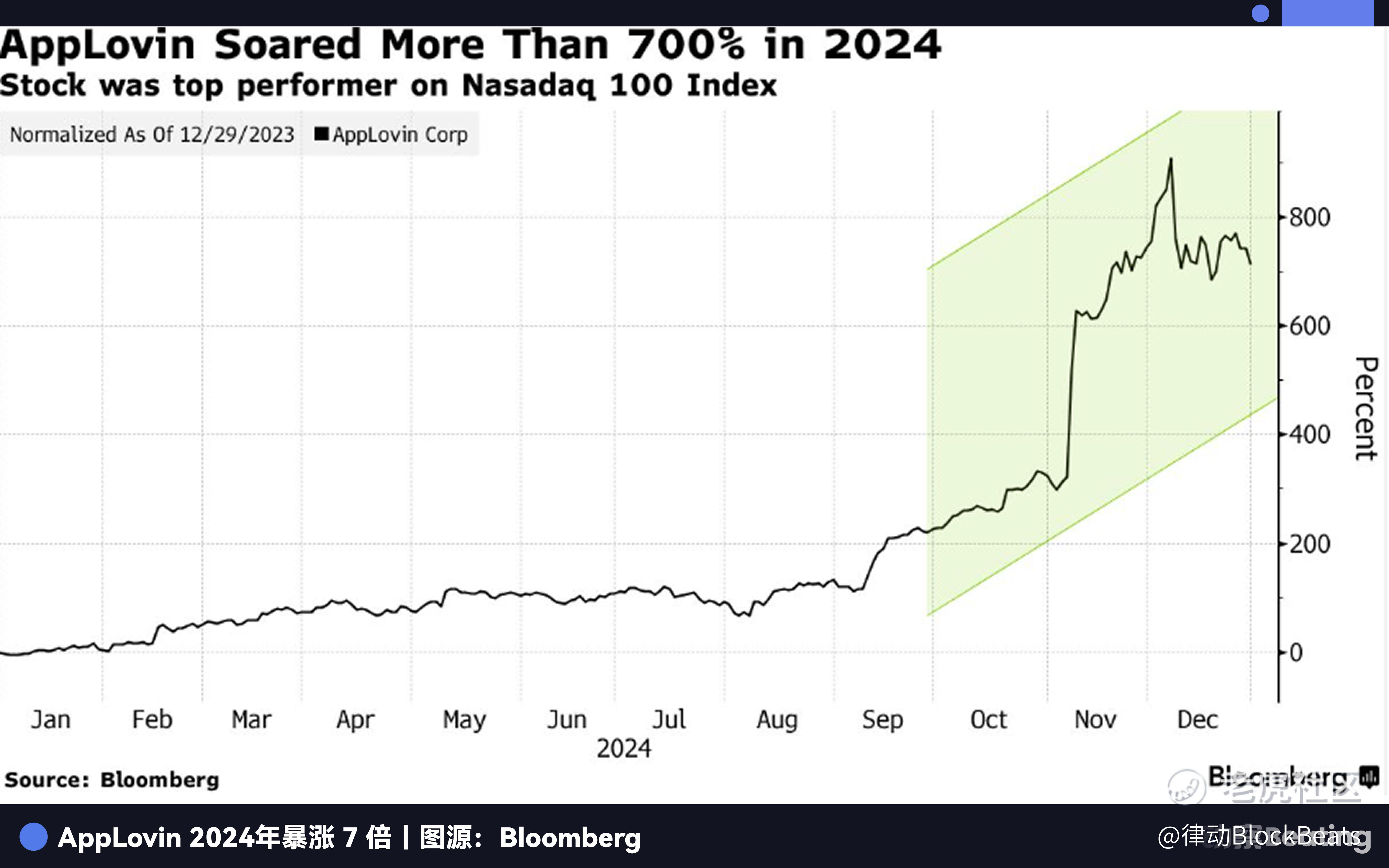 2025 年全年,AppLovin 股价上涨 108%。而在 2024 年,这个数字更为夸张,超过 700%,市值一度突破 1400 亿美元。