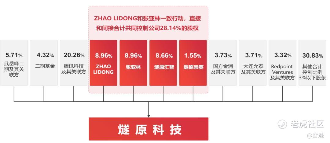IPO前,ZHAO LIDONG、张亚林分别持股为8.9643%,燧原汇智持股为8.6596%,燧原崇英持股为1.5474%,腾讯科技持股为19.9493%,二期基金持股为4.3219%,国方金浦持股为3.5411%,武岳峰二期持股为3.0607%,大连允泰持股为2.0218%,北京燧清持股为1.7735%,武岳峰三期持股为1.7725%;