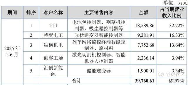 不过拓普泰克也由此对大客户存在较大依赖,2022年—2024年及2025年上半年,公司来自前五大客户的销售收入占比分别为57.95%、61.11%、67.19%和 69.97%,客户集中度逐年走高。