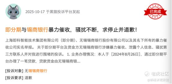与此同时,监管要求商业银行加强合作方管理,严格准入和审批,及时调整合作名单。对于互联网助贷业务贷后催收管理,发现存在违规催收行为的,应当及时纠正,情形严重的,应采取终止合作等措施。对于锡商银行来说,应严格管控合作机构风险,对类似上文中即分期(即科集团旗下)的催收行为提高警惕。