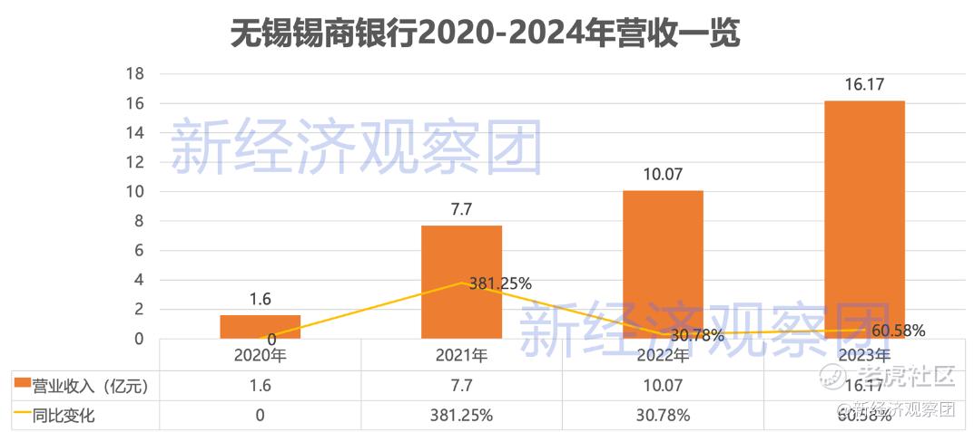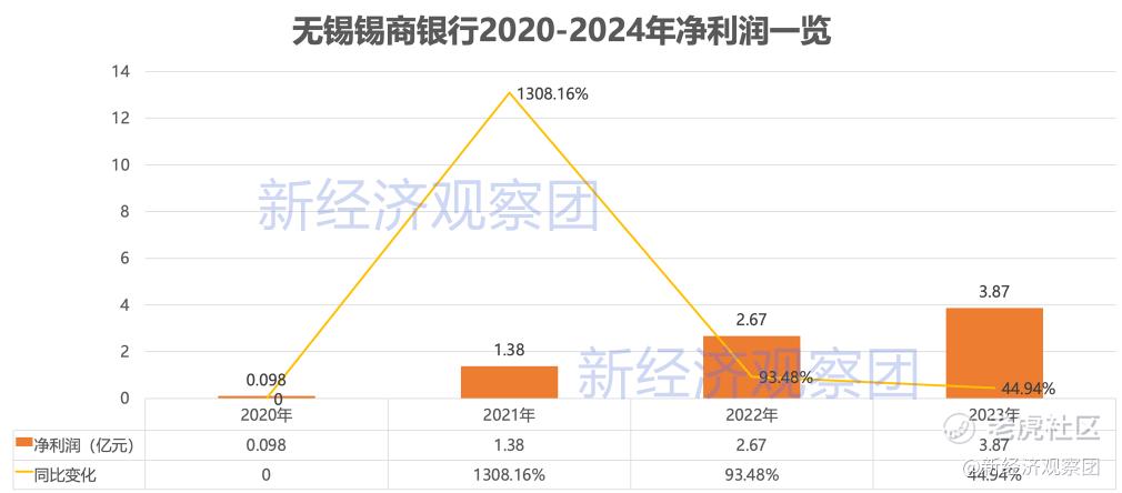 开业初期,锡商银行业务规模较小。2020年全年实现营业收入1.6亿元,净利润0.098亿元,尚处于市场培育阶段。随着互联网贷款合作模式快速铺开,该行营收在2021年跃升至7.7亿元,同比增长381.25%;净利润同步飙升至1.38亿元,同比增幅达1308.16%,显示出极强的增长动能。