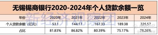 这种结构性特征并非短期现象。回溯2020至2023年,锡商银行个人贷款在总贷款中的比重分别为81.83%、86.82%、80.39%和75.17%,虽呈缓慢下降趋势,但始终占据绝对主导地位。而从绝对规模看,2024年零售贷款余额仍同比增长超20%,扩张节奏并未放缓。