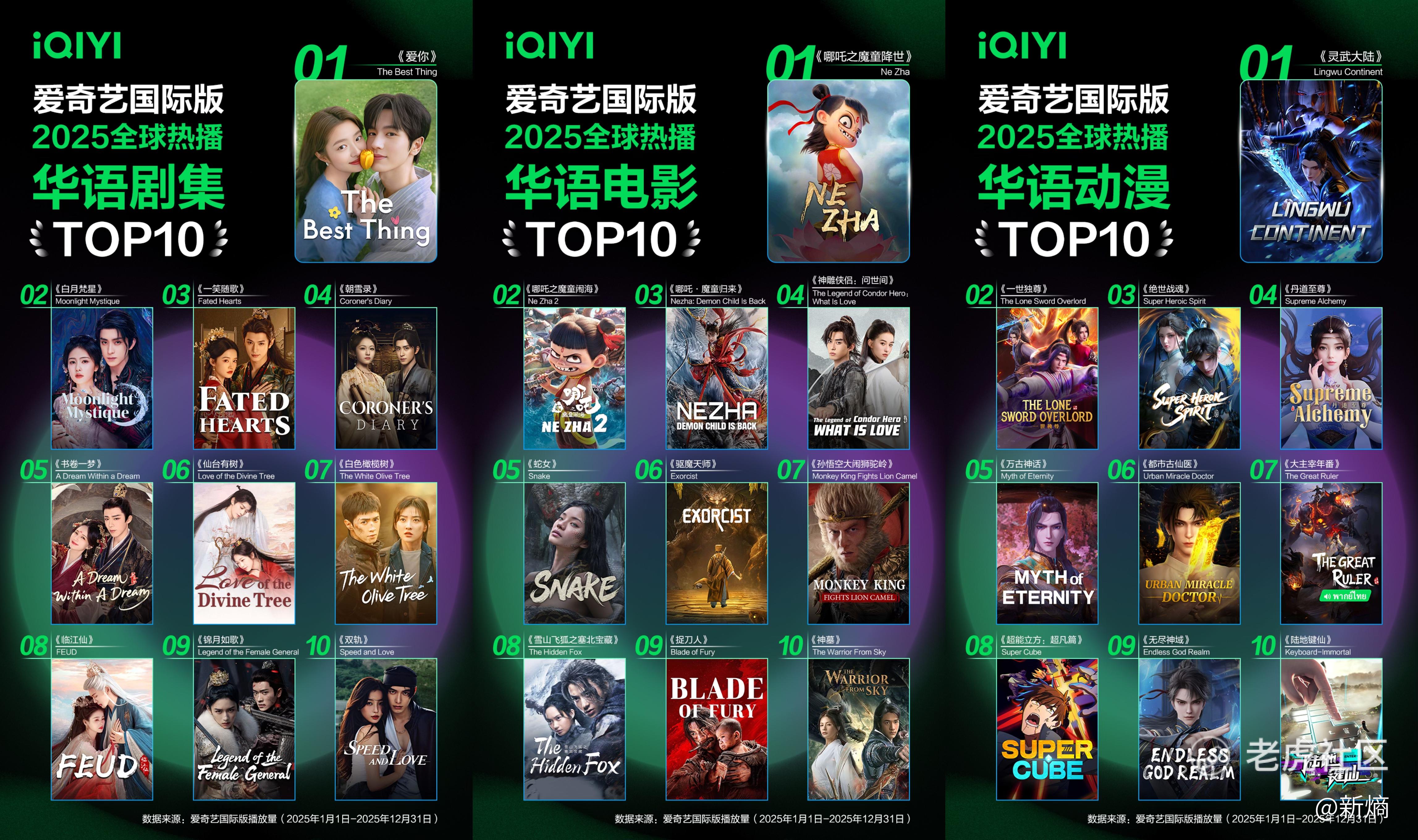 1月20日,爱奇艺国际版正式发布2025年度内容热播榜,平台全年内容播放量同比增长114.5%,创下历史新高。