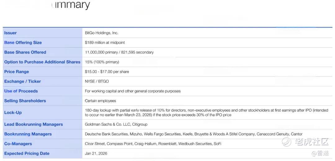 加密货币托管初创企业BitGo(股票代码:“BTGO”)昨日在纽交所上市,BitGo发行价为18美元,发行1100万股,募资2亿美元。