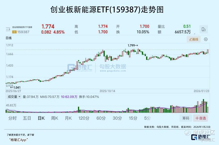 创业板新能源ETF(159387)锚定创业板新能源指数,标的指数涵盖锂电池、逆变器、电池化学品、工控设备、锂电专用设备、光伏加工设备等产业链上中下游,固态电池+储能占比超65% ,权重股包括宁德时代、阳光电源、汇川技术等行业龙头公司。同时由于是聚焦在创业板,涨跌幅限制20CM,相比在主板市场的个股涨幅更有弹性。