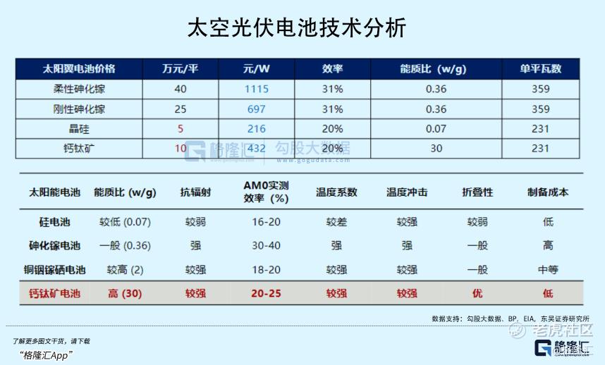 在之前,太空光伏主要采用砷化镓(GaAs)电池,虽然效率高达30%以上且抗辐射能力强,但由于其制造工艺复杂、良率低,叠加需要原材料镓、铟等稀有金属,其高达每平米数十万元的昂贵成本限制了大规模应用。
