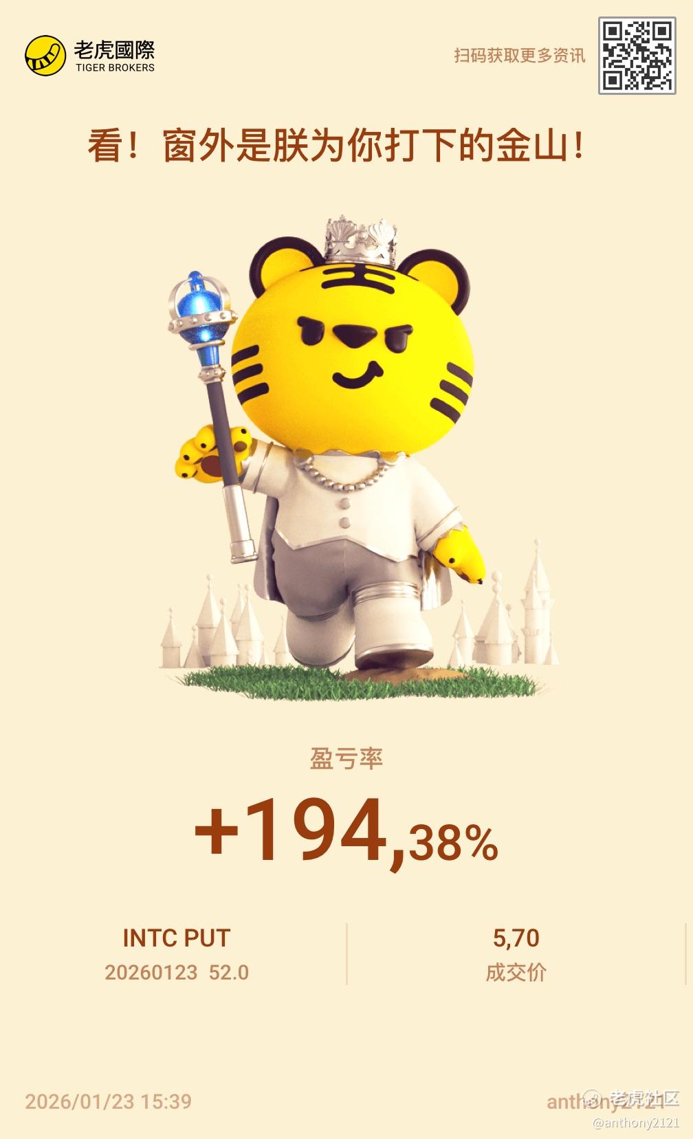 {"i18n":{"language":"zh_CN"},"detailType":1,"isChannel":false,"data":{"magic":2,"id":524913284006648,"tweetId":"524913284006648","gmtCreate":1769179256605,"gmtModify":1769179741488,"author":{"id":3571718332167607,"idStr":"3571718332167607","authorId":3571718332167607,"authorIdStr":"3571718332167607","name":"anthony2121","avatar":"https://static.laohu8.com/default-avatar.jpg","vip":1,"userType":1,"introduction":"","boolIsFan":false,"boolIsHead":false,"crmLevel":8,"crmLevelSwitch":0,"individualDisplayBadges":[],"fanSize":3,"starInvestorFlag":false},"themes":[{"themeId":"5bfad02ab61749c8bfe6573ac7bbe8a3","categoryId":"b76d3c59fc044df59779c041b25852a6","name":"晒晒更赚钱","type":0,"rnLink":"https://laohu8.com/RN?name=RNTheme&page=/theme/detail&rndata={\"themeId\":5bfad02ab61749c8bfe6573ac7bbe8a3}&rnconfig={\"headerBarHidden\": true}","description":"晒晒你的盈亏单,秀秀虎友们的实力!","image":"https://static.tigerbbs.com/347184265ee0be8c363259951f8033cb"}],"images":[{"img":"https://static.tigerbbs.com/830433edea7fe27375d248682babad9b","width":"1008","height":"1657"}],"coverImages":[{"img":"https://static.tigerbbs.com/830433edea7fe27375d248682babad9b","width":"1008","height":"1657"}],"title":"","html":"<html><head></head><body><p><a href=\"https://laohu8.com/OPT/INTC 20260123 52.0 PUT\">$INTC 20260123 52.0 PUT$</a> 涨的多高,就跌的越厉害。 赚完正股,反手做空。 </p><img src=\"https://static.tigerbbs.com/830433edea7fe27375d248682babad9b\" tg-width=\"1008\" tg-height=\"1657\"></body></html>","htmlText":"<html><head></head><body><p><a href=\"https://laohu8.com/OPT/INTC 20260123 52.0 PUT\">$INTC 20260123 52.0 PUT$</a> 涨的多高,就跌的越厉害。 赚完正股,反手做空。 </p><img src=\"https://static.tigerbbs.com/830433edea7fe27375d248682babad9b\" tg-width=\"1008\" tg-height=\"1657\"></body></html>","text":"$INTC 20260123 52.0 PUT$ 涨的多高,就跌的越厉害。 赚完正股,反手做空。","highlighted":1,"essential":1,"paper":1,"likeSize":4,"commentSize":0,"repostSize":0,"favoriteSize":0,"link":"https://laohu8.com/post/524913284006648","repostId":0,"isVote":1,"tweetType":1,"viewCount":3528,"commentLimit":10,"likeStatus":false,"favoriteStatus":false,"reportStatus":false,"symbols":["INTC"],"verified":2,"subType":0,"readableState":1,"langContent":"CN","currentLanguage":"CN","warmUpFlag":false,"orderFlag":false,"shareable":true,"causeOfNotShareable":"","featuresForAnalytics":["晒单贴"],"commentAndTweetFlag":false,"andRepostAutoSelectedFlag":false,"upFlag":false,"length":61,"optionInvolvedFlag":true,"xxTargetLangEnum":"ZH_CN"},"commentList":[],"isCommentEnd":true,"isTiger":false,"isWeiXinMini":false,"url":"/m/post/524913284006648"}