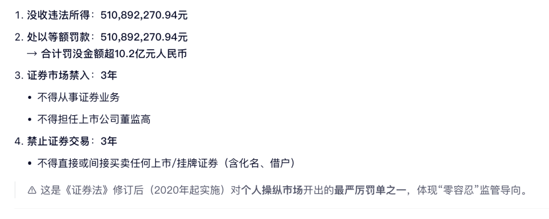 根据当事人违法行为的事实、性质、情节与社会危害程度,依据《证券法》第一百九十二条的规定,我会决定:没收余韩违法所得510,892,270.94元,并处以510,892,270.94元的罚款。
