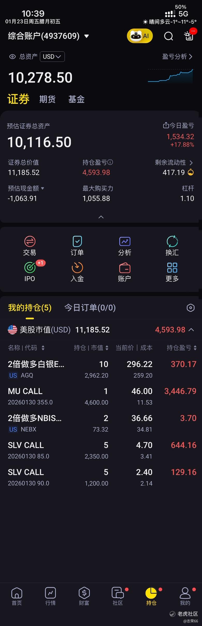 终于冲上1W了,白银很给力,美光也不错,就是拿不稳,跌了点就平仓