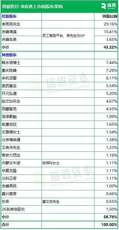 招股书显示,普祺医疗在香港上市前的股东架构中,