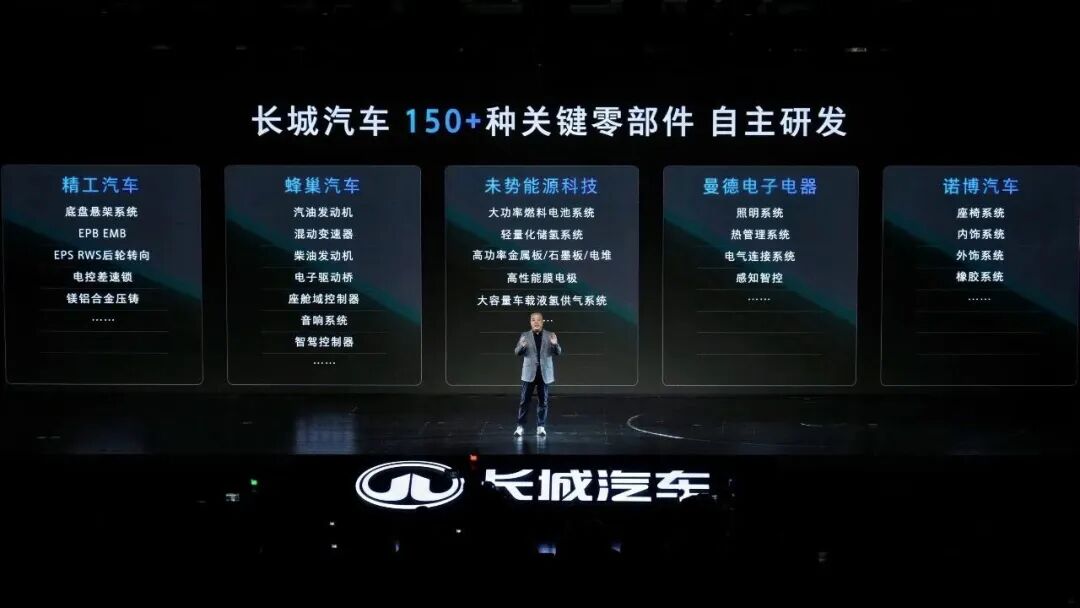 目前长城已有超150+种关键零部件实现自研