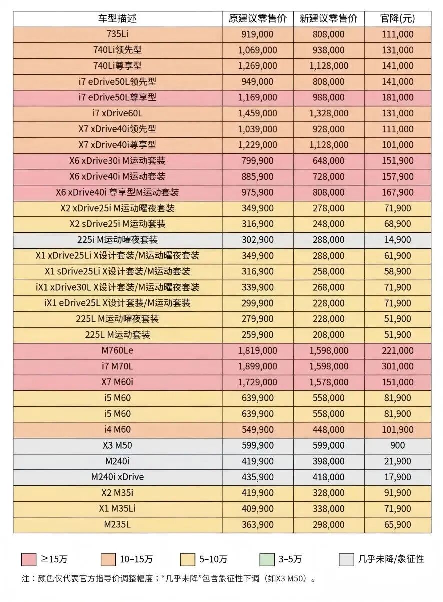 宝马2026开年就对31款主力车型调价,入门纯电iX1终端价下探至18.75万元,旗舰电动i7M70L直降30.1万元;