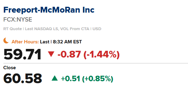 Freeport-McMoRan (FCX)第四季度每股收益为0.47美元,比市场预期值0.29美元高出0.18美元;营收同比下降 1.5%至 56.3 亿美元,市场预期值52.9 亿美元。