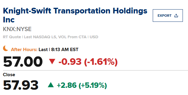 Knight-Swift (KNX)第四季度每股收益为0.31美元,比市场预期值0.35美元低0.04美元;营收同比下降 0.4%至 18.6 亿美元,市场预期值 19 亿美元。该公司预计第一季度每股收益为 0.28 - 0.32 美元,市场预期值 0.31 美元。