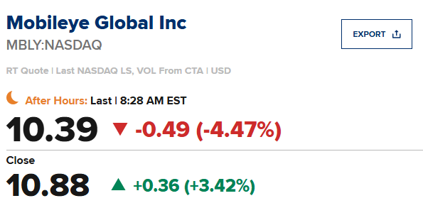 Mobileye Global (MBLY)第四季度每股收益0.06美元,与市场预期值0.06美元一致;营收同比下降 9.0%至 4.46 亿美元,市场预期值 4.323 亿美元。该公司下调了26财年业绩指引,预计 2026 年营收为 19 亿至 19.8 亿美元,市场预期值 20 亿美元。