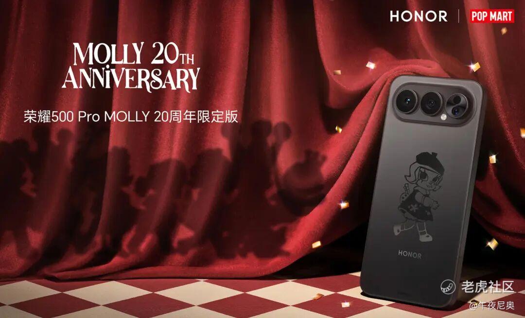 1 月 19 日,荣耀与泡泡玛特联合推出荣耀 500 Pro MOLLY 20 周年限定版。