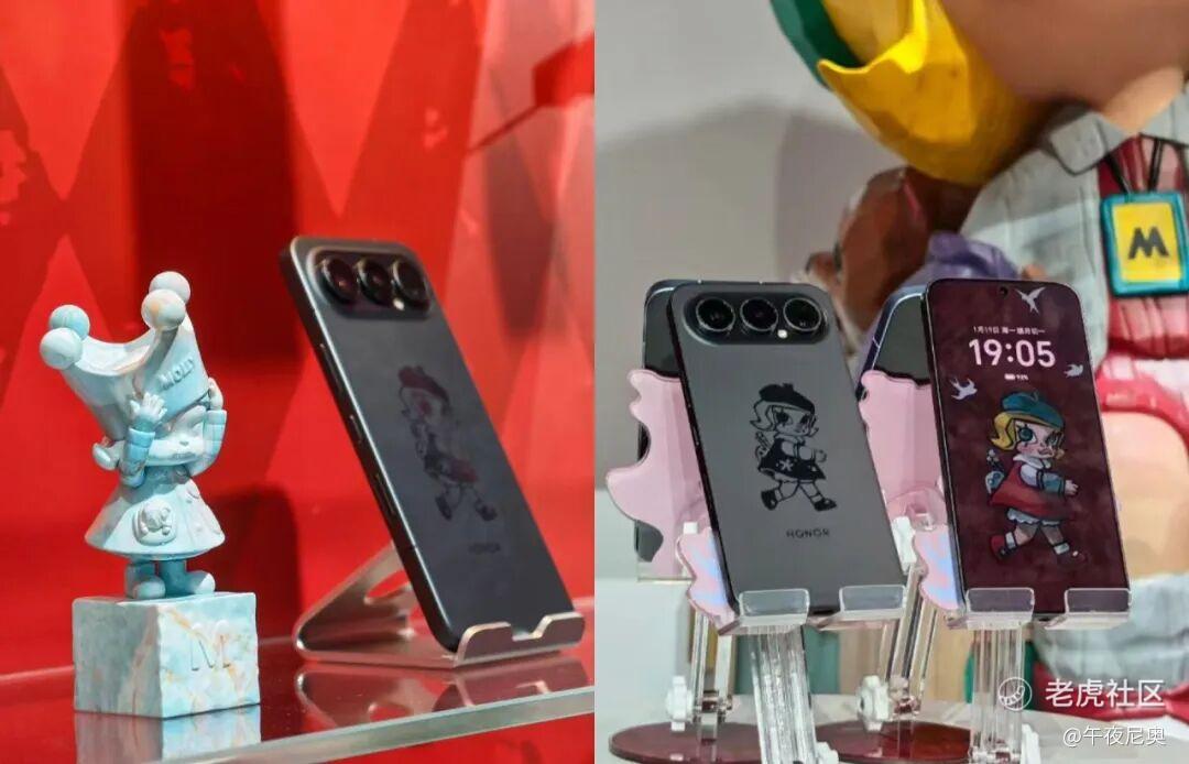 Molly的艺术原画手稿,被荣耀的工业设计团队以毫米级精度转化,摒弃了简单的贴图模式,转而通过背板纹理、光影层次让形象“活”起来;系统主题的每一个图标、每一次动画切换,都经过反复调试,确保既保留Molly的潮流特质,又契合荣耀的极简美学。