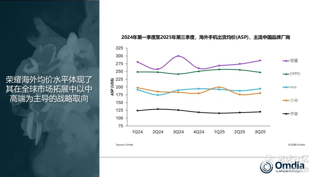 当多数厂商还在200美元以下的红海里肉搏时,荣耀将资源精准投向300-499美元价位段,该价位段占其海外出货的23%,在中国主流厂商中占比最高。