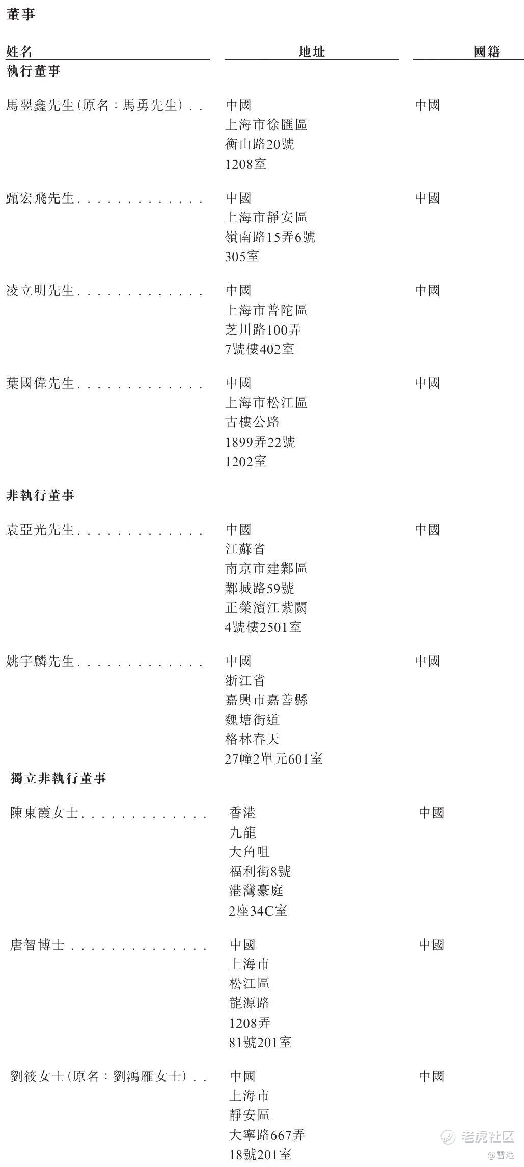 上海君屹执行董事分别为马翌鑫(原名:马勇)、甄宏飞、凌立明、叶国伟,非执行董事分别为袁亚光、姚宇麟,独立非执行董事分别为陈东霞女士、唐智博士、刘筱女士(原名:刘鸿雁女士)。