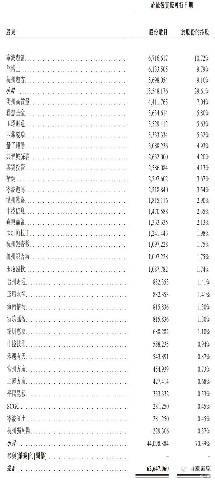 其中,马翌鑫持股为13.43%,泰屹创投持股为8.31%,泽健创投持股为6.3%,上海奥普晟持股为5.32%,凌立明持股为2.34%,白女士持股为0.92%,甄宏飞持股为0.91%,张卫国持股为0.85%,叶国伟持股为0.67%,徐薇持股为0.43%,贾国麟、高丽君分别持股为0.09%,马娇、马强分别持股为0.06%,一共持股为39.79%。