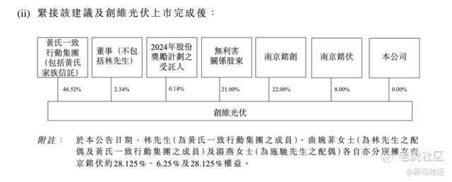 根据公告,完成分拆上市后,黄氏家族将持有创维光伏46.52%的股份。