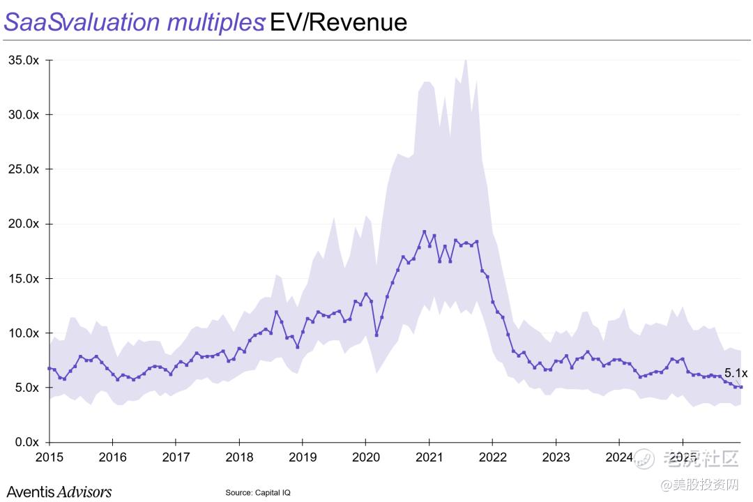 所以,投资者愿意给出平均 30 倍、甚至更高的市销率(P/S)——注意,这里是市销率,因为多数 SaaS 公司早期并不盈利。本质上,大家是在为“未来几十年都能收租”这个确定性提前买单。